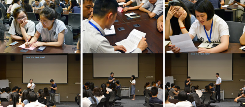 當(dāng)視頻結(jié)束后,管理部為大家分別準(zhǔn)備正面反饋和負(fù)面反饋案例練習(xí),拿到案例后大家展開激烈討論,將剛剛收獲的知識消化并運(yùn)用,最終分小組進(jìn)行了精彩的現(xiàn)場模擬。