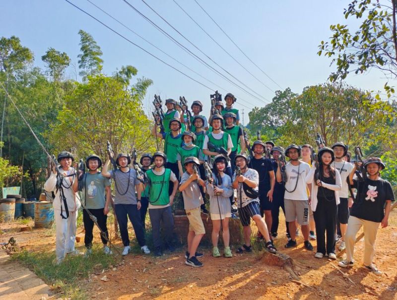 天氣晴朗,山莊里充滿了陽(yáng)光的氣息,趁這大好時(shí)光,大家開始集合練習(xí)射箭,舒展拳腳為接下來的CS對(duì)戰(zhàn)做準(zhǔn)備。在教練的指導(dǎo)下,大家分為防守和進(jìn)攻兩組進(jìn)行真人CS對(duì)戰(zhàn),經(jīng)過一番角逐后防守方勝出。熱情高漲的大家在更換防守進(jìn)攻方后,又大戰(zhàn)了一場(chǎng)才算盡興。酣暢淋漓之后,稍作歇息,就到了快樂的皮劃艇時(shí)光了。此時(shí)陽(yáng)光撒在湖面上波光粼粼,微風(fēng)拂過臉頰溫暖舒爽,放眼望去四周的景色猶如一副歲月靜好的畫卷;接下來的極限飛盤對(duì)抗賽也很受歡迎,教練講完規(guī)則后,大家就開始分為四組,兩兩進(jìn)行對(duì)抗比賽了。大家在草地上盡情奔跑,揮灑汗水,還是從前那個(gè)少年,初心從未有改變。
