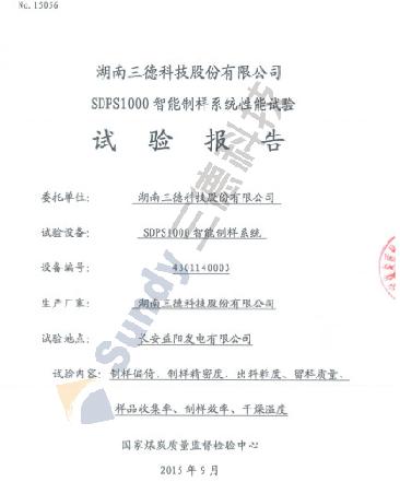 日前,國家煤炭質量監(jiān)督檢驗中心出具的《SDPS1000智能制樣系統(tǒng)性能試驗報告》(NO:15056,以下簡稱“《報告》”)表明,由三德科技研制的SDPS1000智能制樣系統(tǒng)留樣質量和出料粒度、制樣精密度等符合國標要求,分析樣和存查樣無灰分偏倚、全水分樣不存水分實質性偏倚,制粉收集率平均高達95.6%。這是繼去年9月國家煤炭質量監(jiān)督檢驗中心、今年6月國電科學技術研究院性能鑒定后,SDPS1000智能制樣系統(tǒng)再次獲得國內權威檢測機構鑒定認可。