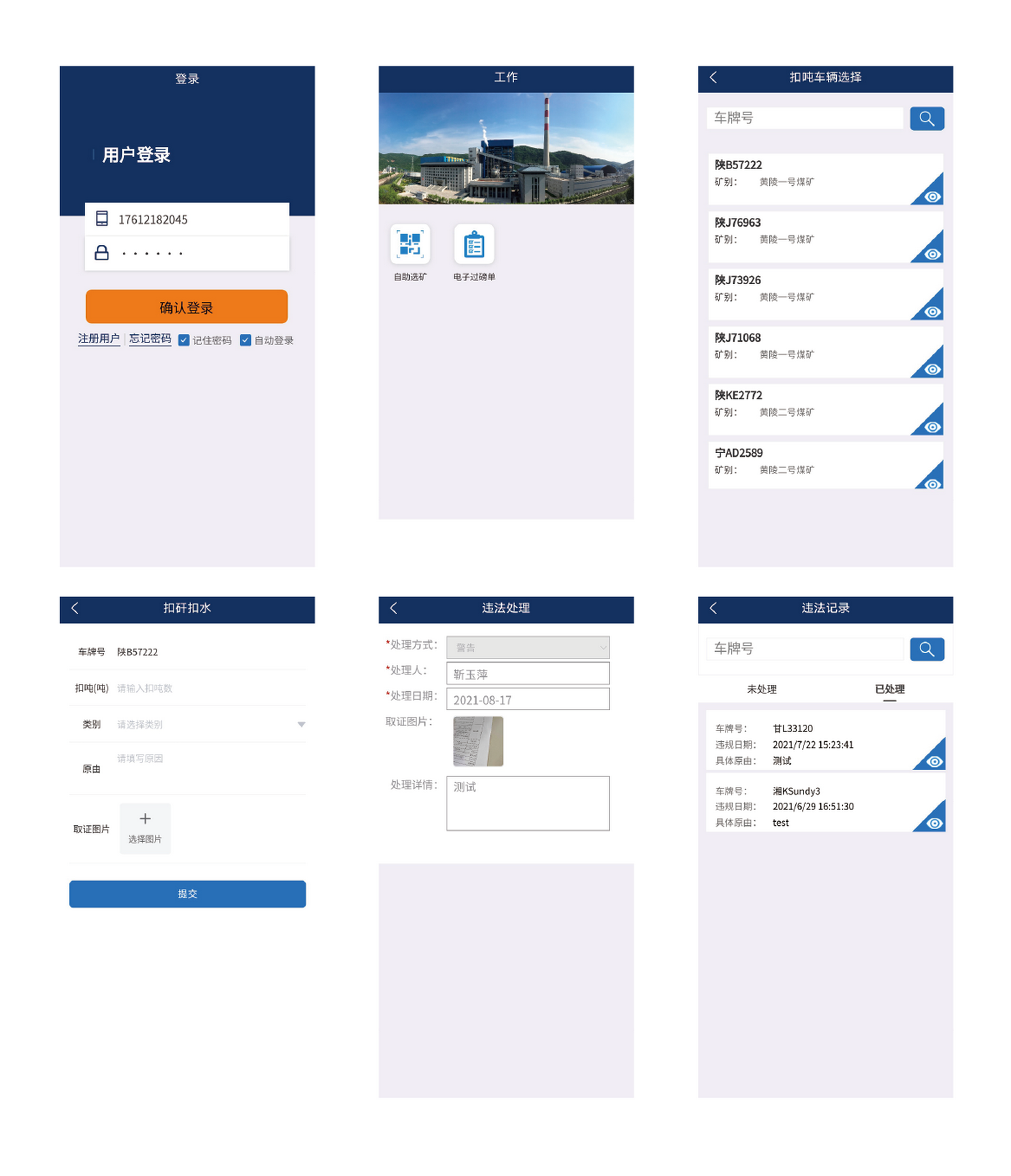 系統(tǒng)在接卸區(qū)域構(gòu)建無線網(wǎng)群,配置智能PDA,可實(shí)現(xiàn)卸煤區(qū)域的自動分配和在線執(zhí)法功能。違法登記時智能PDA支持拍照上傳,確保執(zhí)法過程公開透明。在違法處理時支持多種處理方式(扣矸、扣水、罰款、警告等),扣噸數(shù)據(jù)直接上傳至計量系統(tǒng),并支持歷史數(shù)據(jù)查詢等功能。
